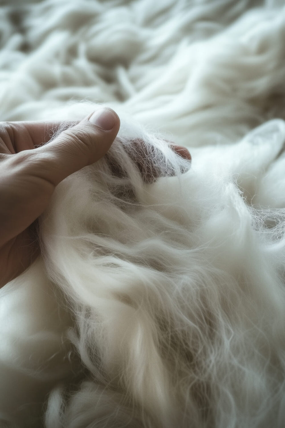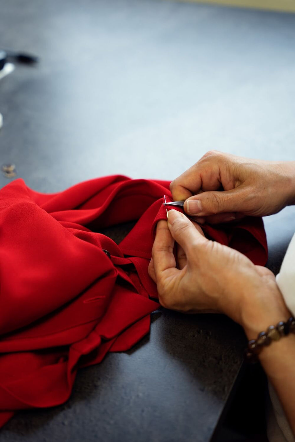 Maison Amin Kader creates its own threads, colors, and fabrics, such as combed cashmere and combed wool threads. From twisting and doubling threads to developing varying densities according to needs, the Maison works through these processes to achieve complete exclusivity of the material all the way to the cut.