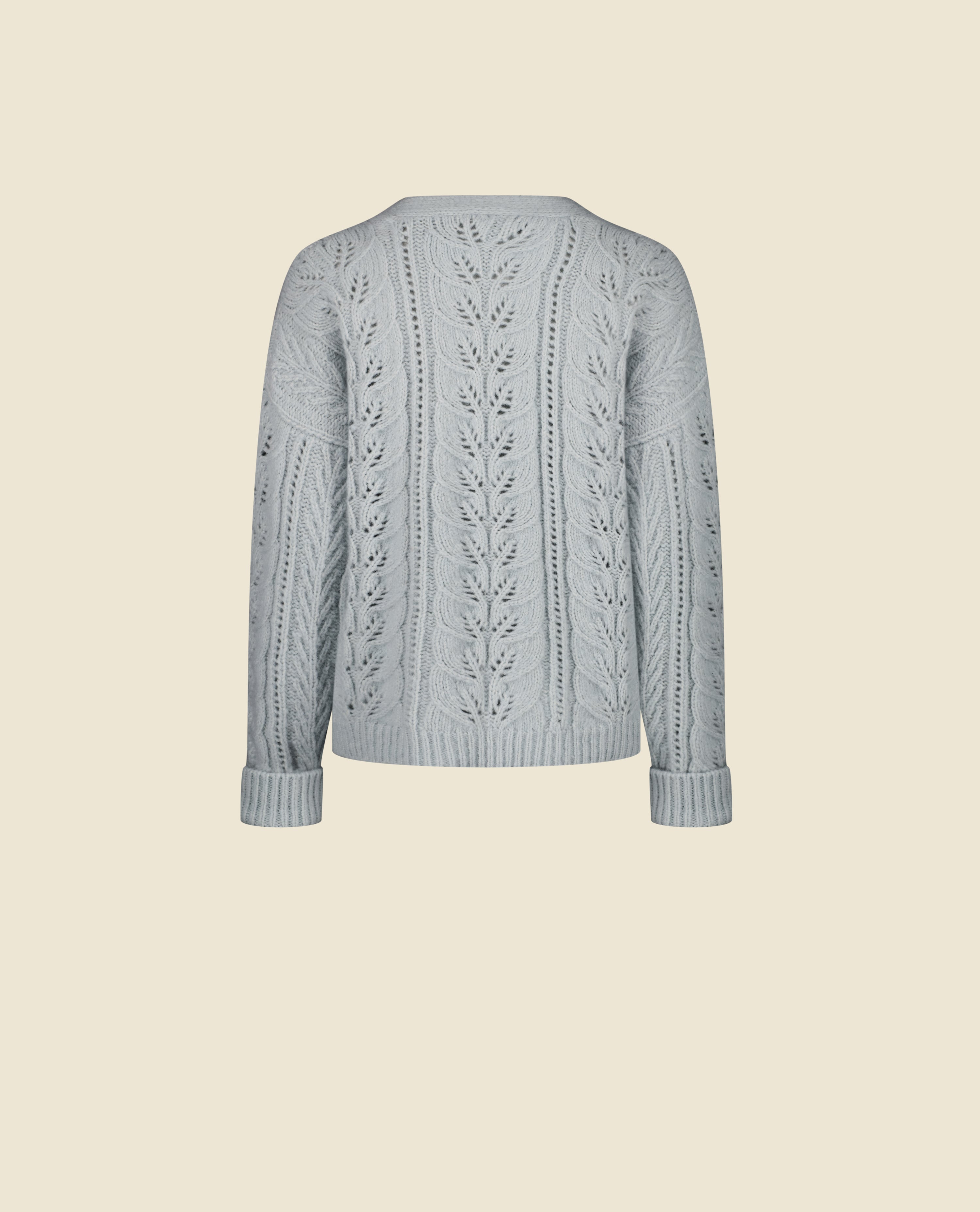 The Carnation cardigan combines casual style with classic lines. Its lace pattern adds a unique charm and a touch of lightness. With its loose and generous fit, this piece blends comfort and femininity effortlessly.