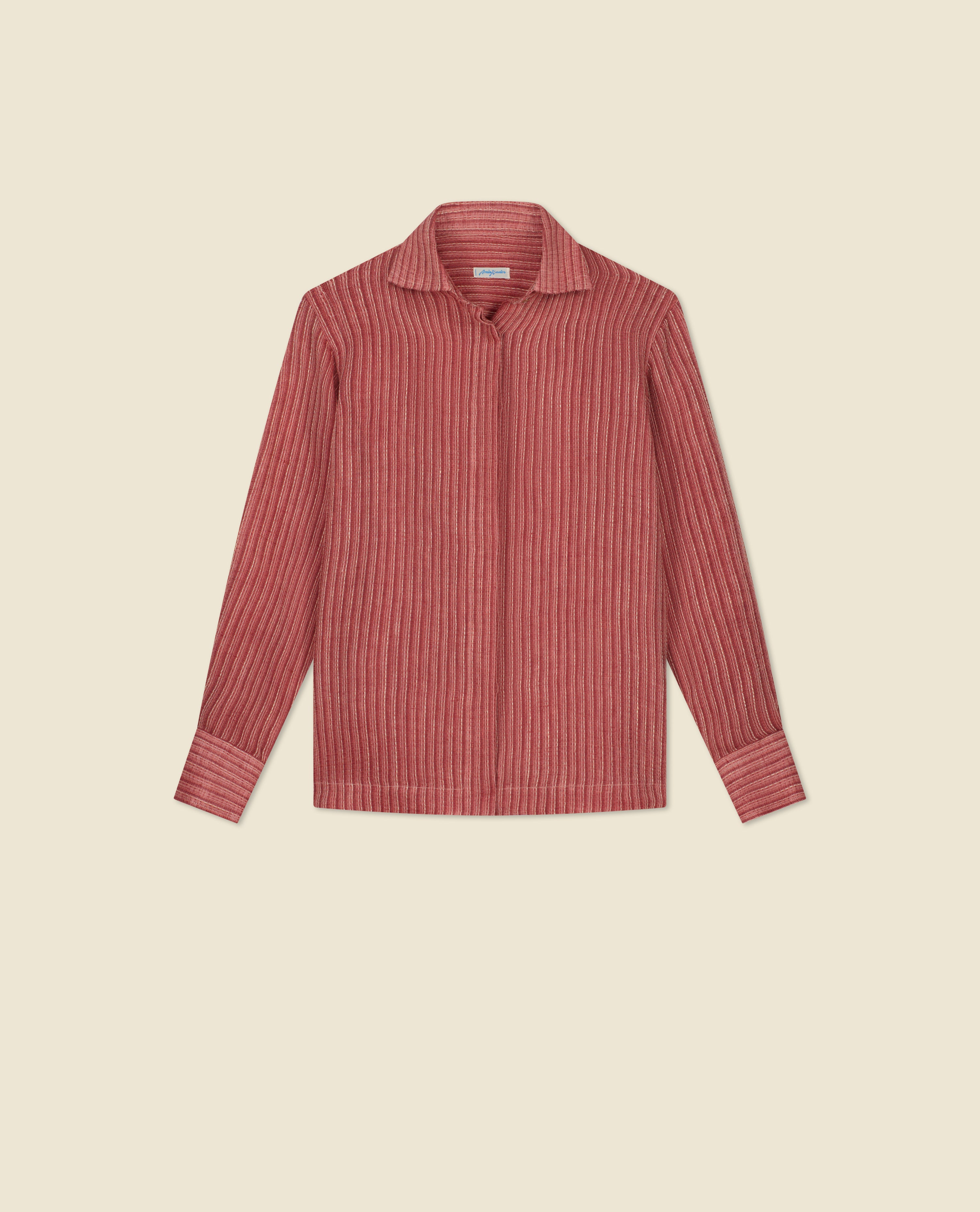 Linen stands out for its lightness and exceptionally soft finish. The AK blouse offers a fluid texture that gently caresses the skin, combining comfort and elegance. Its modern design evokes timeless sophistication.