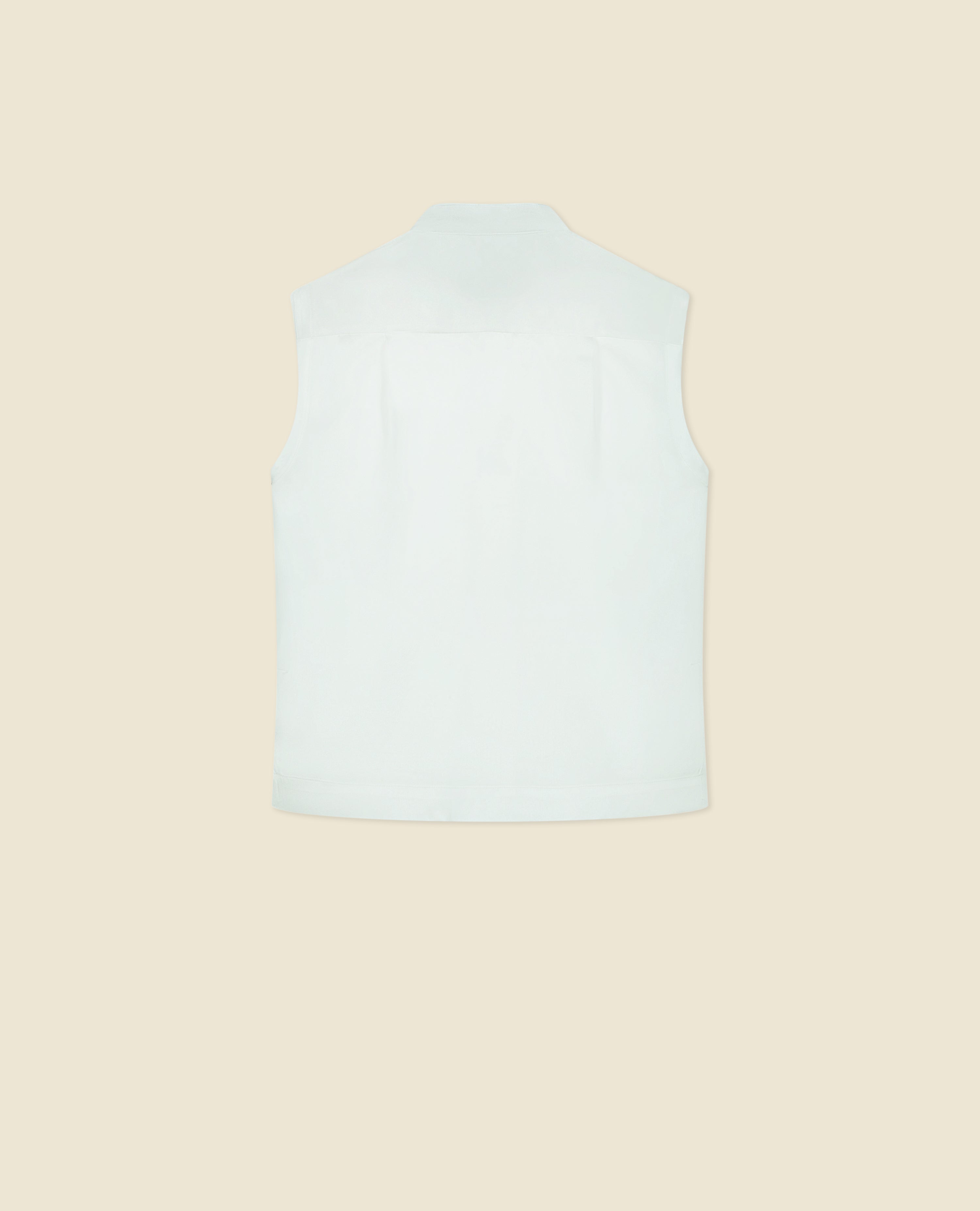 The Portofino blouse is a modern reinterpretation of a timeless womenswear essential. Sleeveless and refined, it stands out with its minimalist silhouette that elevates the elegance of every detail. Carefully crafted, this classic piece embodies the very essence of Maison Amin Kader’s savoir-faire.