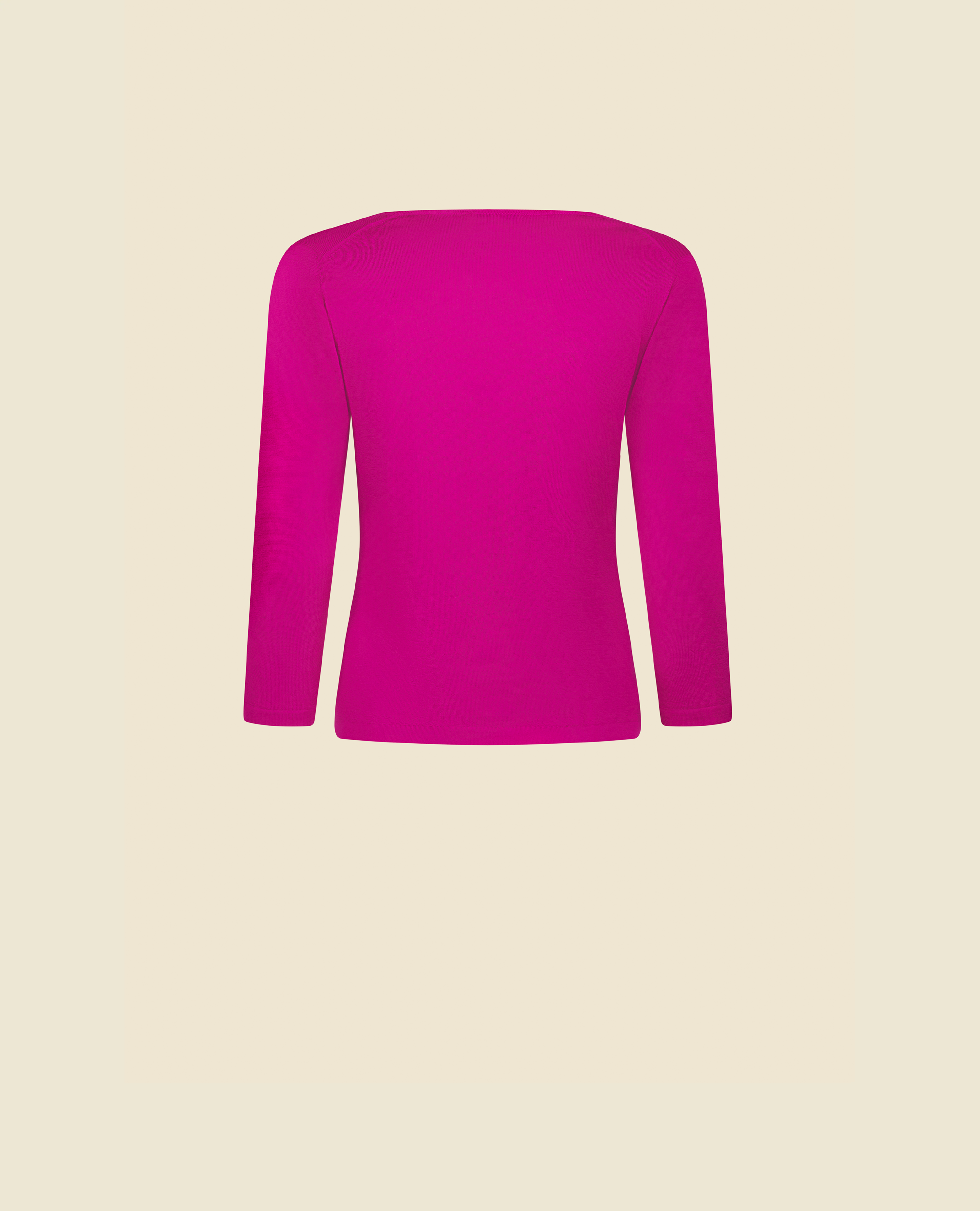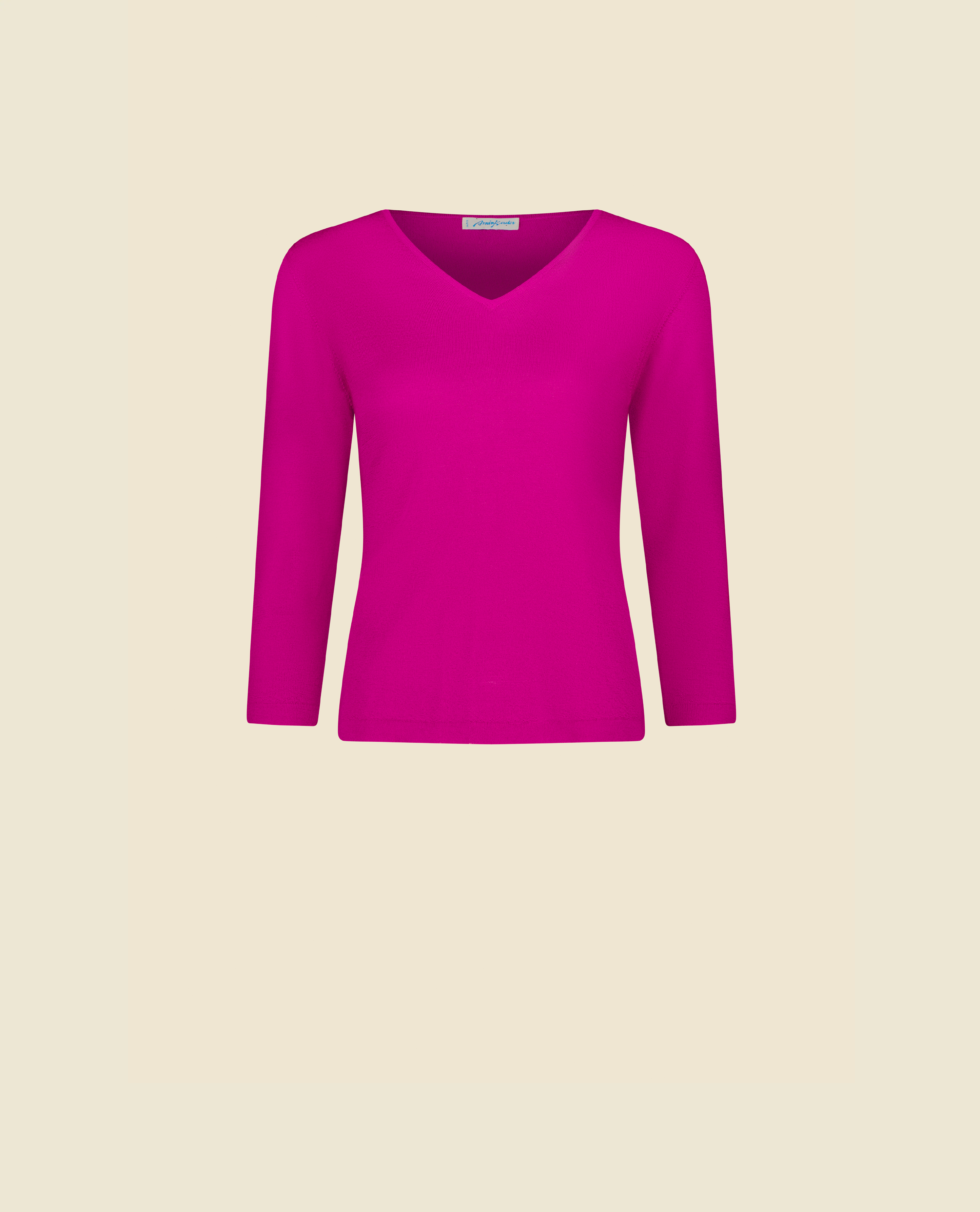 Lightweight V-neck cashmere sweater with 3/4 sleeves.