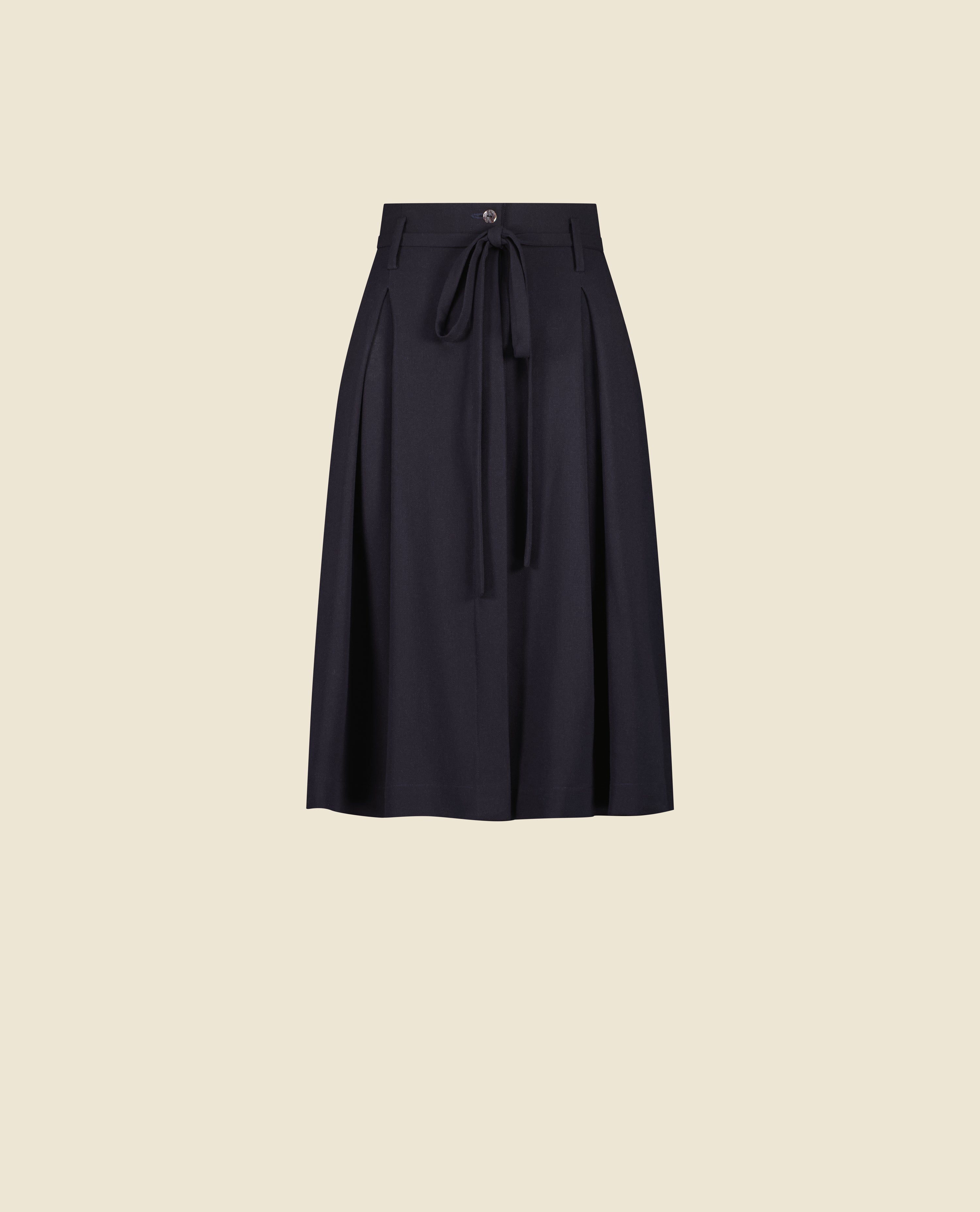 The 99 skirt embodies a contemporary tailoring spirit with a bold feminine touch. This high-waisted, subtly flared piece stands out with its delicate back-crossing ties, creating a distinctive and sophisticated silhouette.