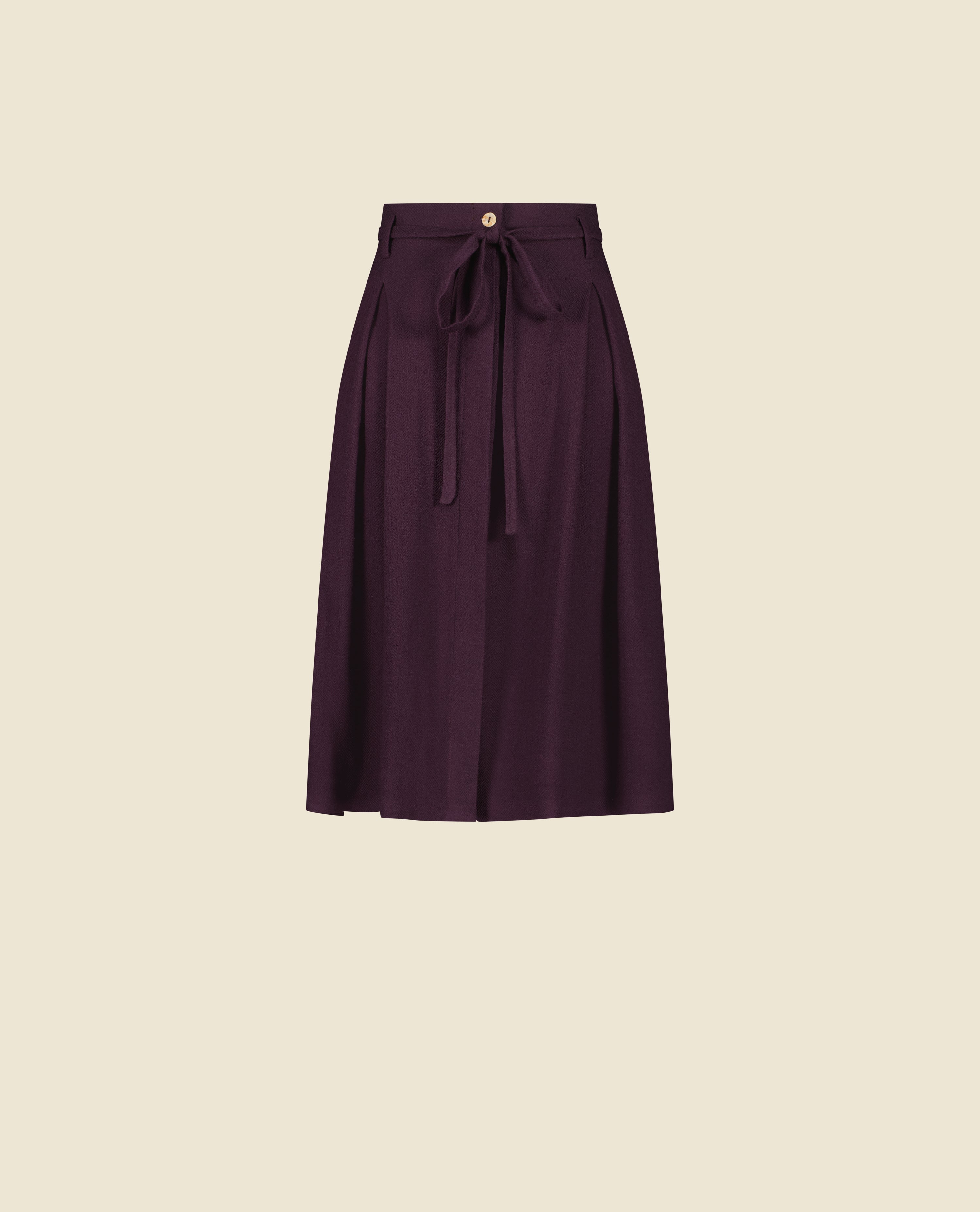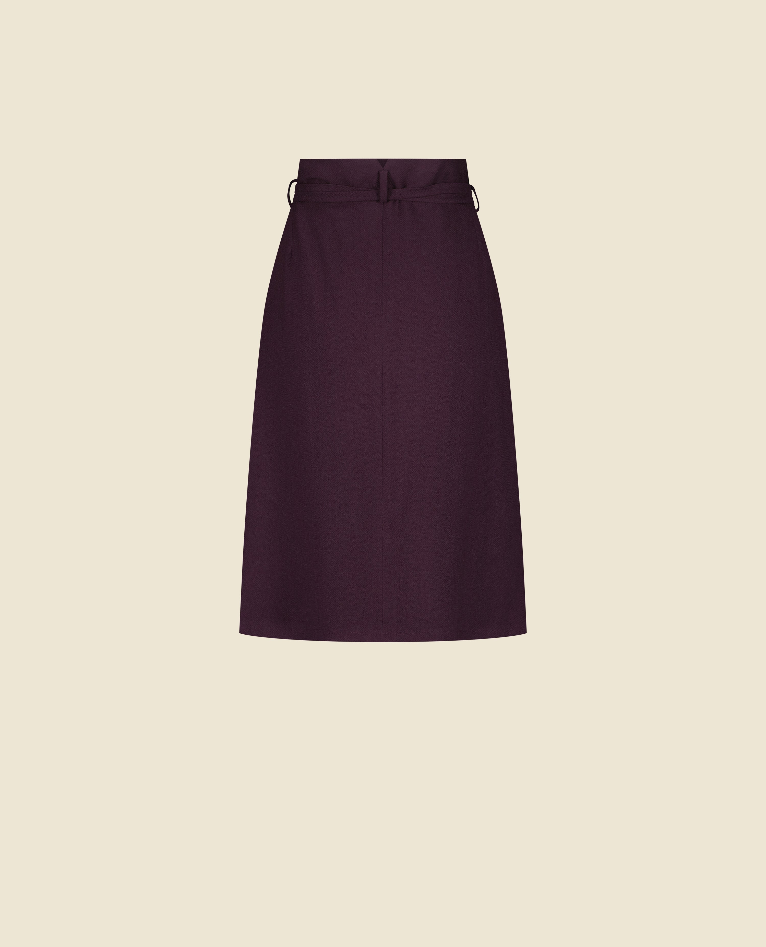 The 99 skirt embodies a contemporary tailoring spirit with a bold feminine touch. This high-waisted, subtly flared piece stands out with its delicate back-crossing ties, creating a distinctive and sophisticated silhouette.