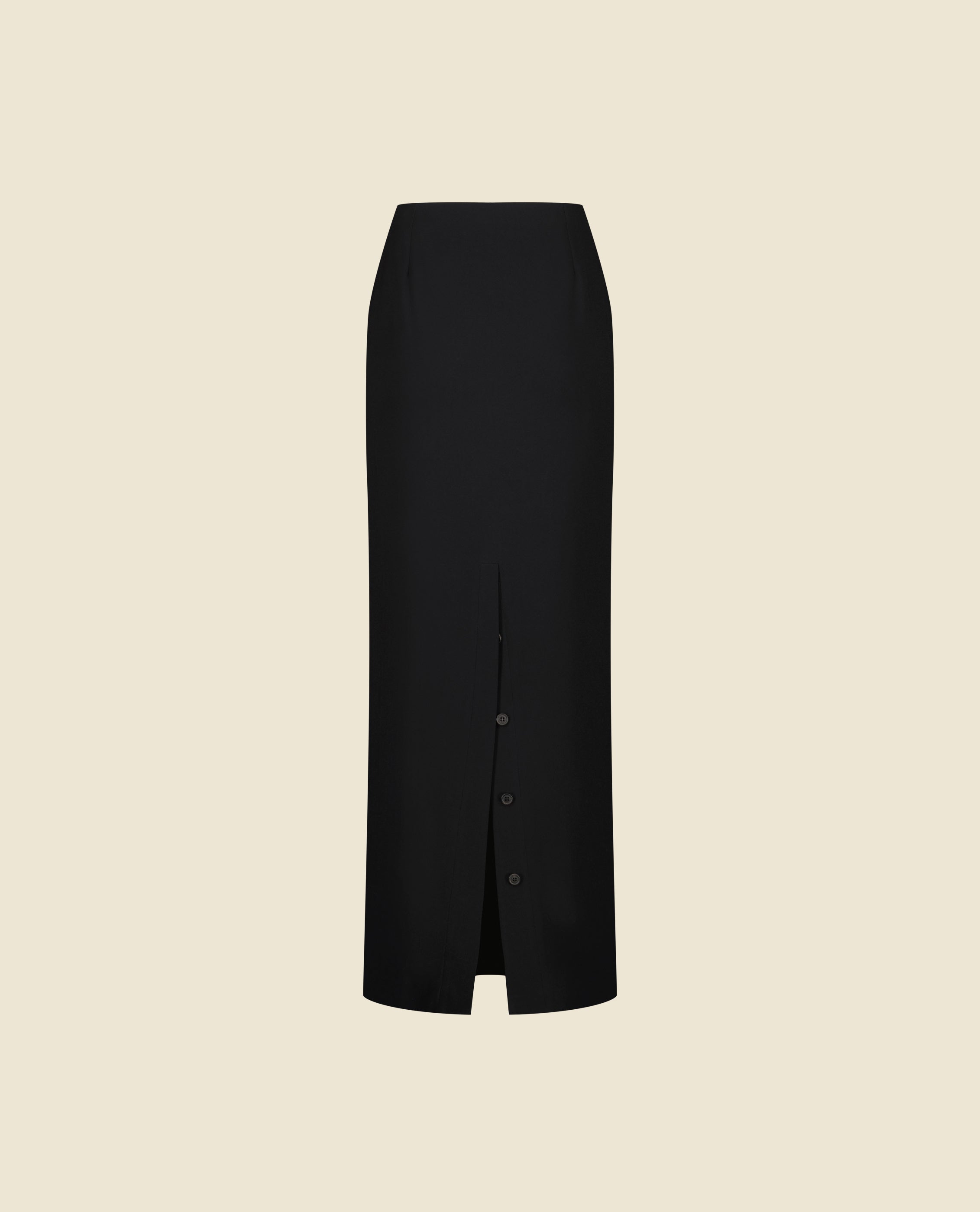 Designed with a minimalist spirit, the Églantine skirt reveals itself through discreet sophistication. Its impeccable straight cut is enhanced by a small, subtly buttoned slit at the back, adding a distinctive touch while preserving the fluidity of the design.