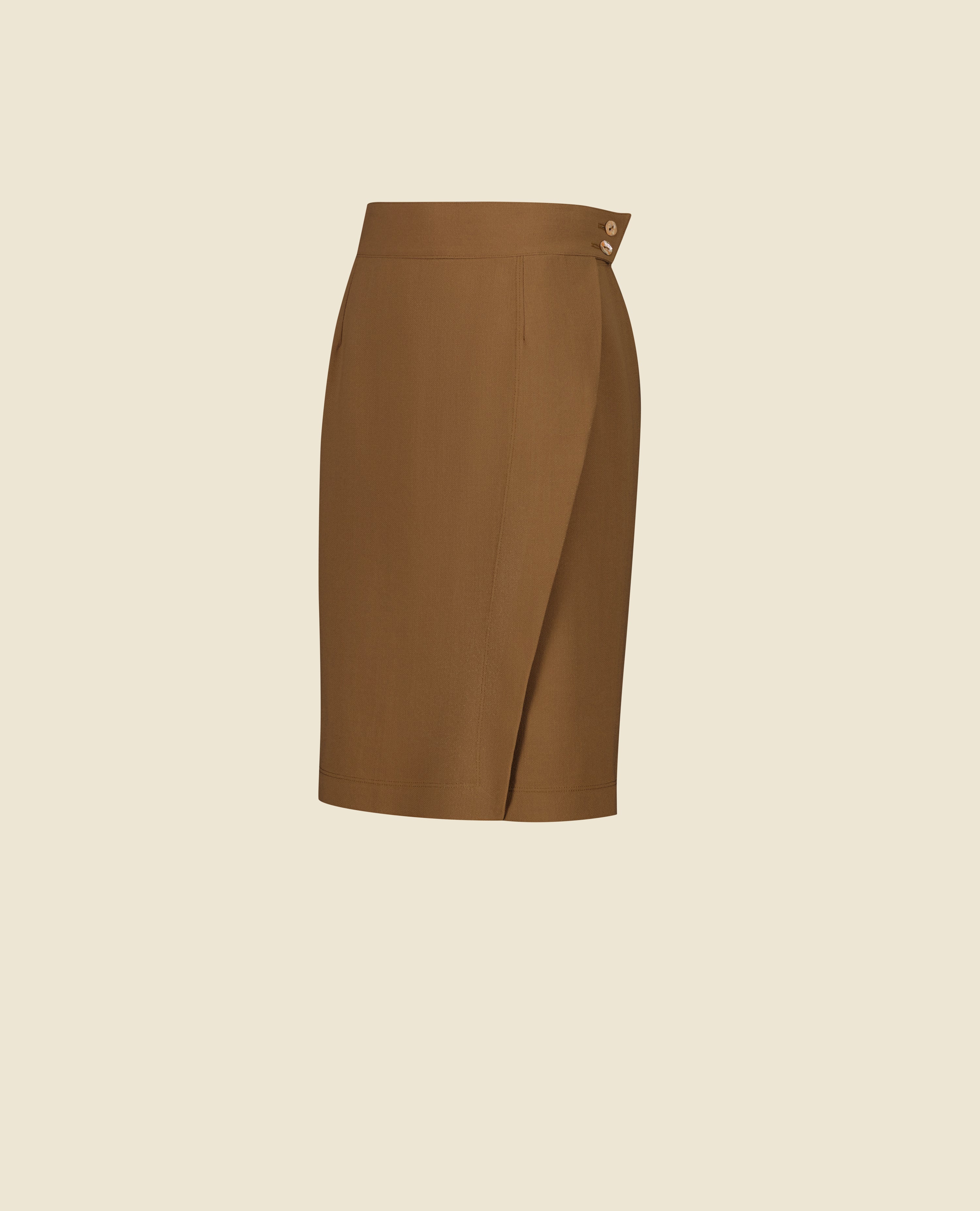 The Ter Wrap skirt combines elegance and fluidity in a short, slightly trapeze cut. Its crossed panels delicately envelop the waist for a comfortable fit, without compromising freedom of movement.