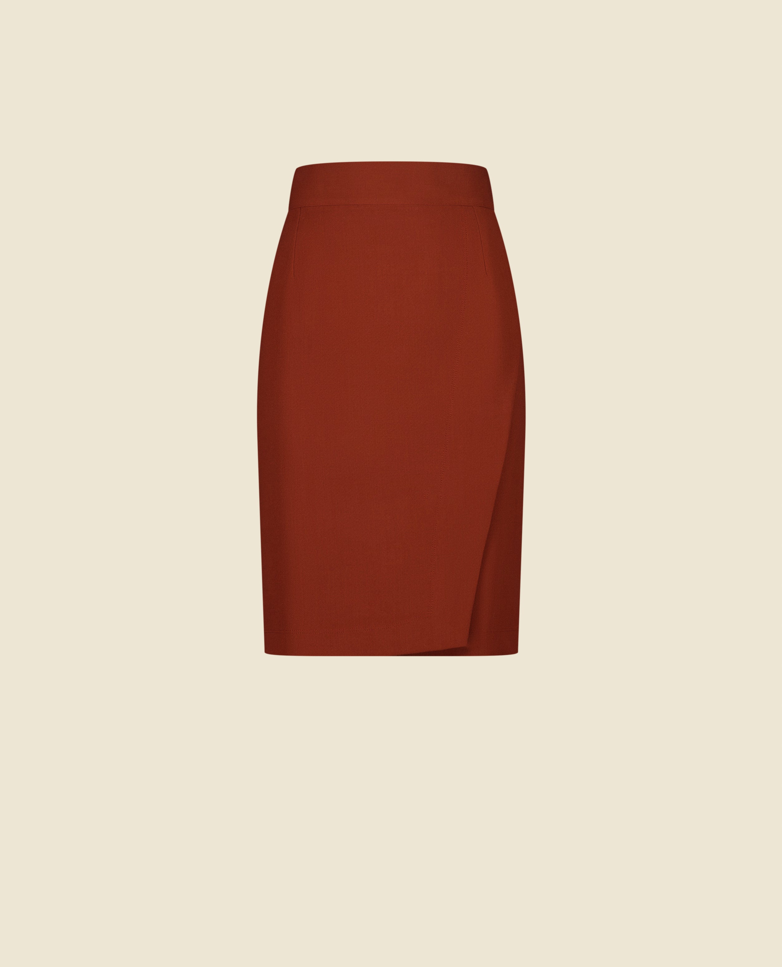 The Ter Wrap skirt blends elegance and fluidity in a short, subtly A-line cut. Its overlapping panels gently wrap around the waist, offering a comfortable fit without compromising freedom of movement.