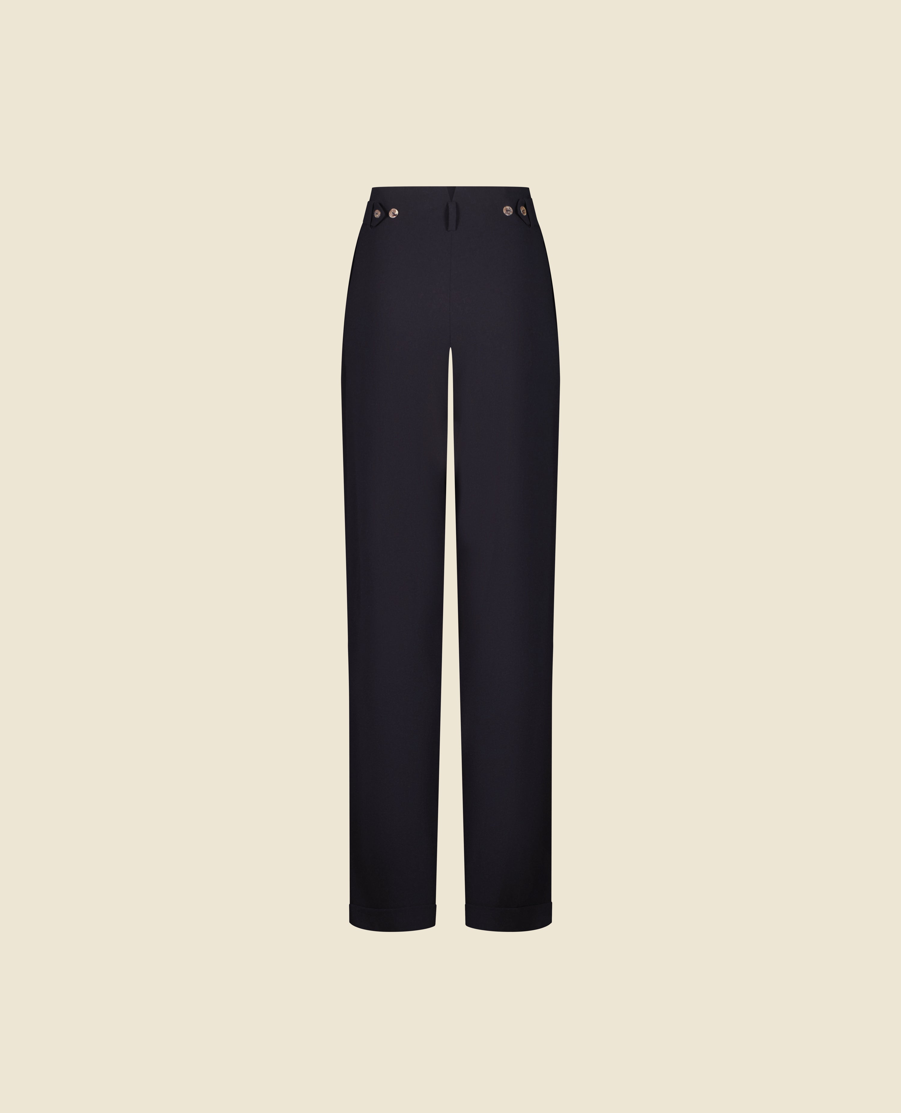 The 178 trousers feature a high waist and tapered leg in linen crepe. The waistband is adjustable thanks to side tabs.