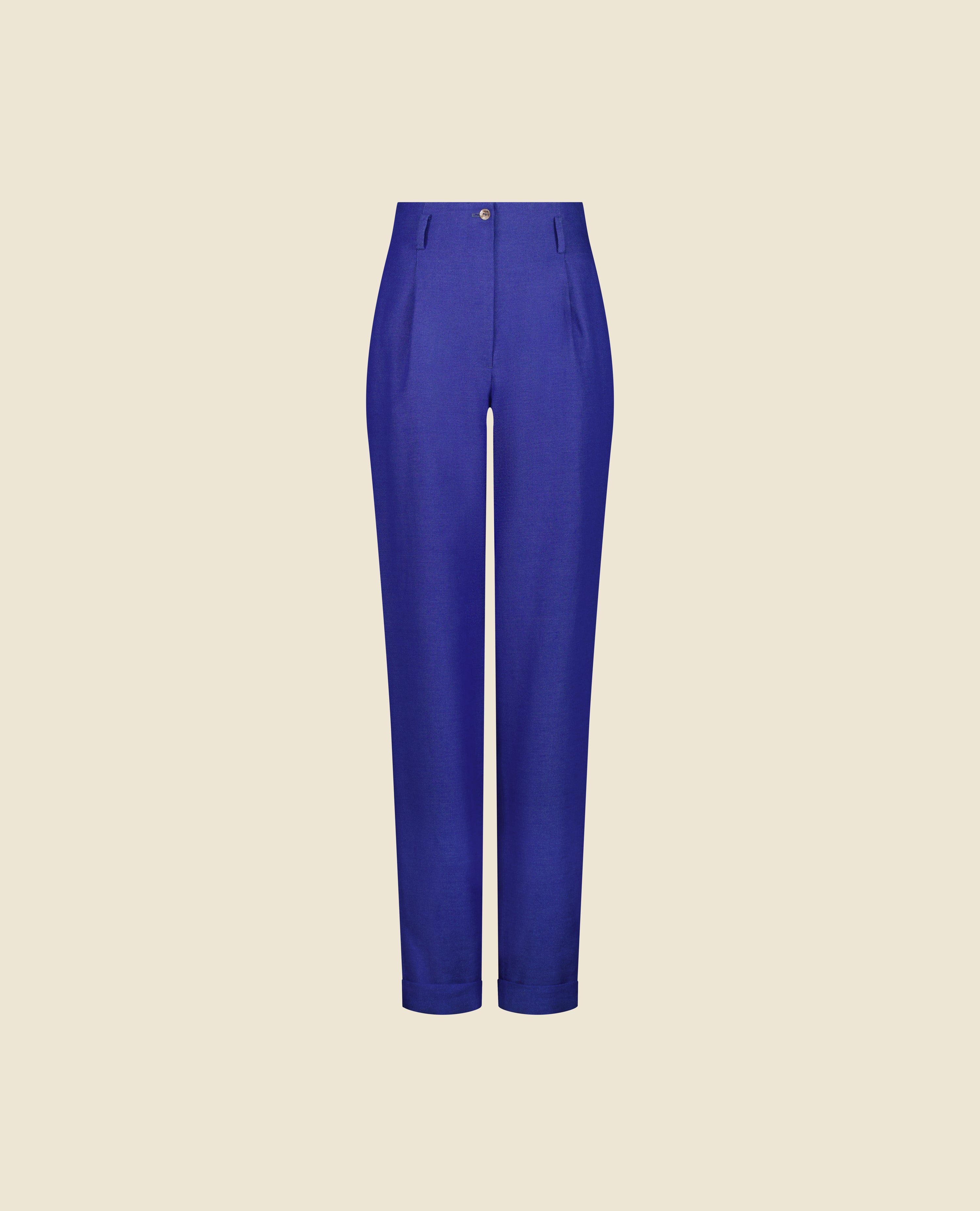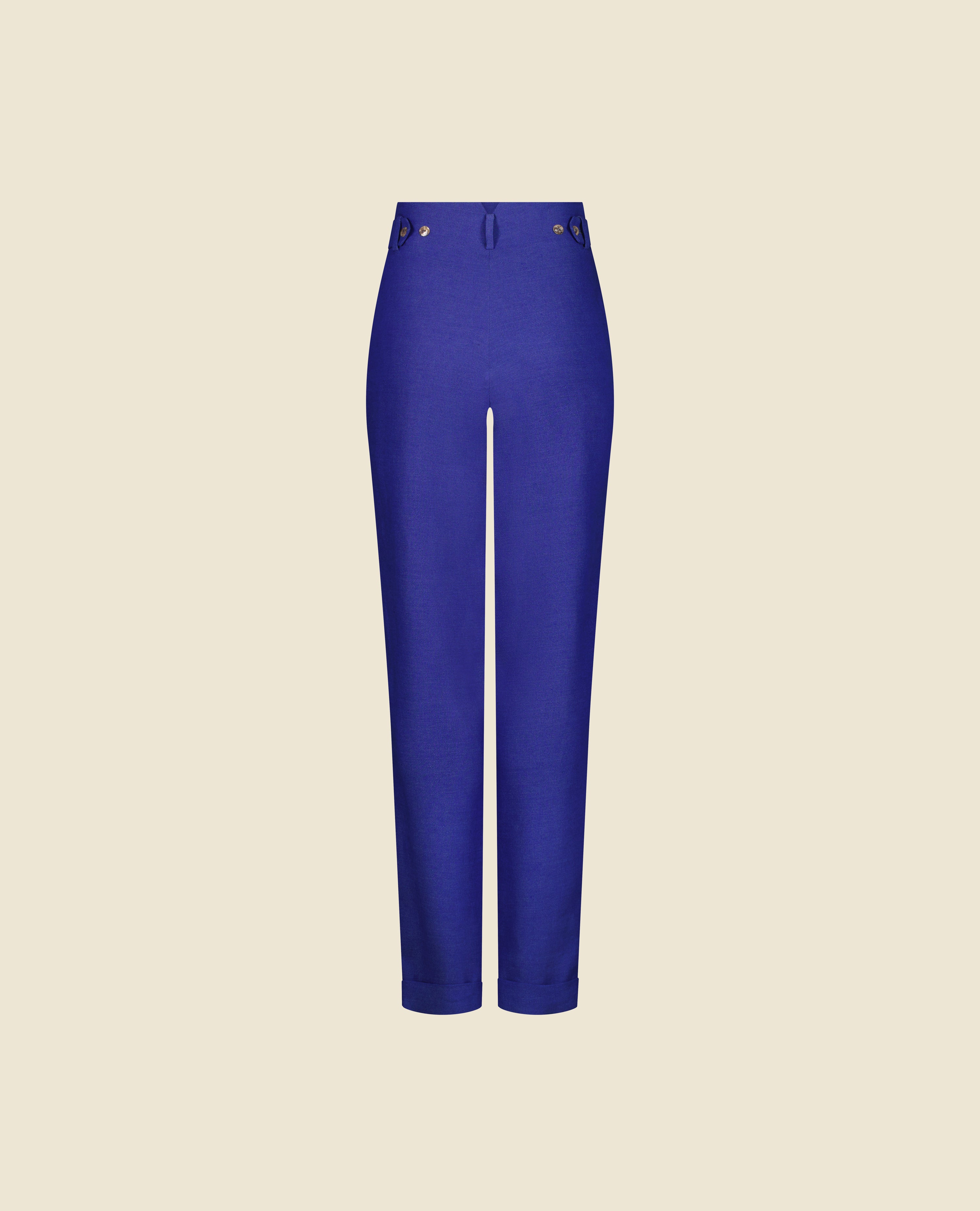 The 178 trousers feature a high waist and tapered leg in linen crepe. The waistband is adjustable thanks to side tabs.