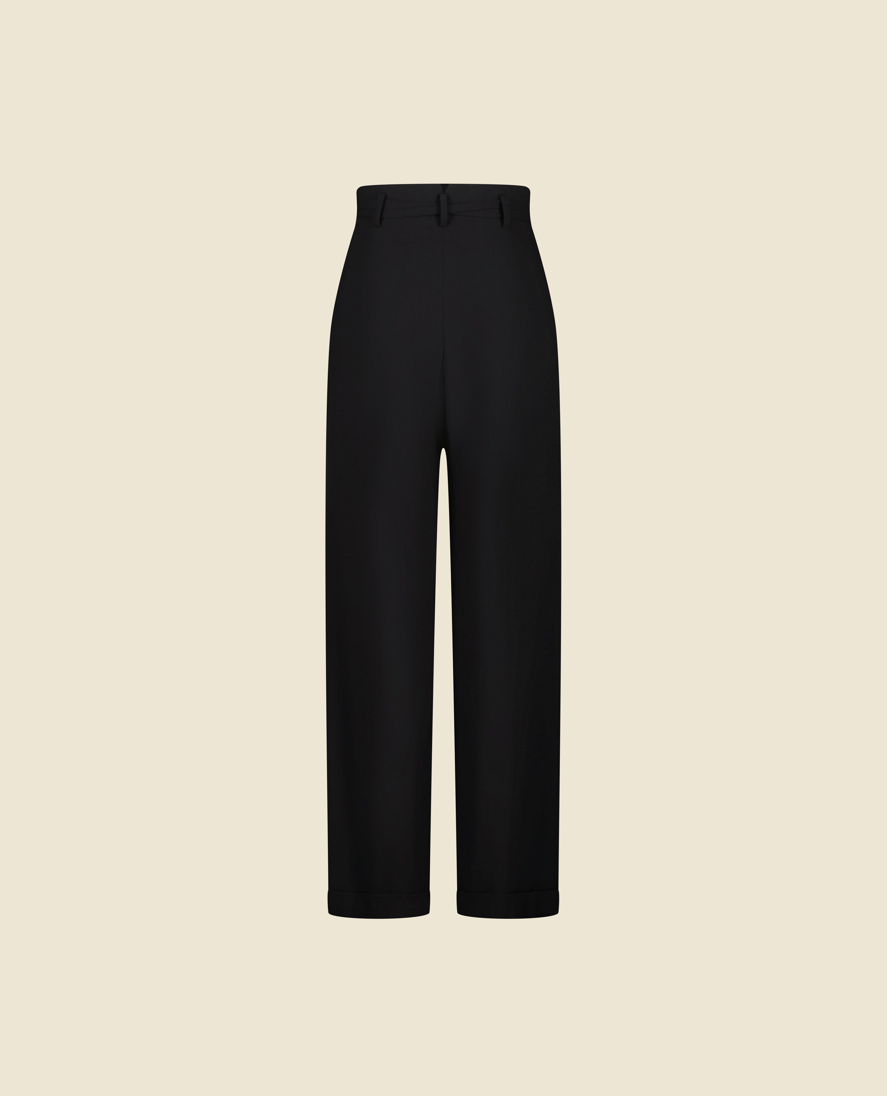 Wide-leg tailored trousers with a fluid drape and a structured high waist.