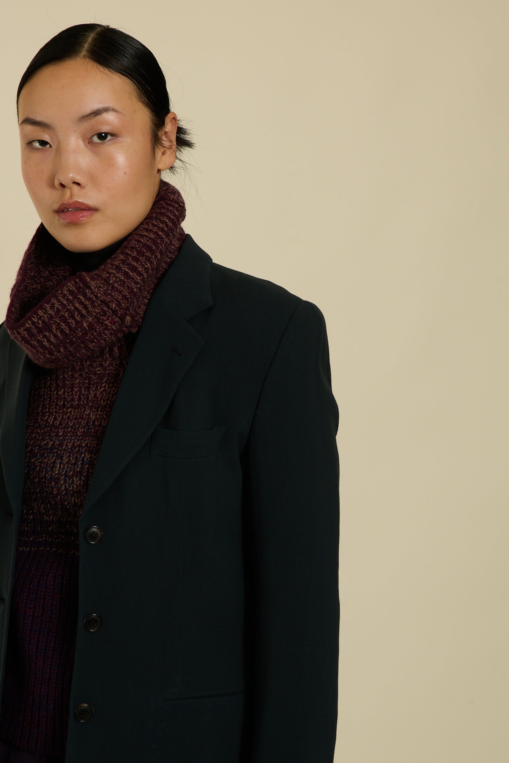 The Ombre 2075 cropped sweater features a delicate play of shades unfolding in a subtle gradient, creating a captivating visual effect. This exceptional, creative piece offers a sense of warmth and absolute comfort thanks to its rich and textured feel.