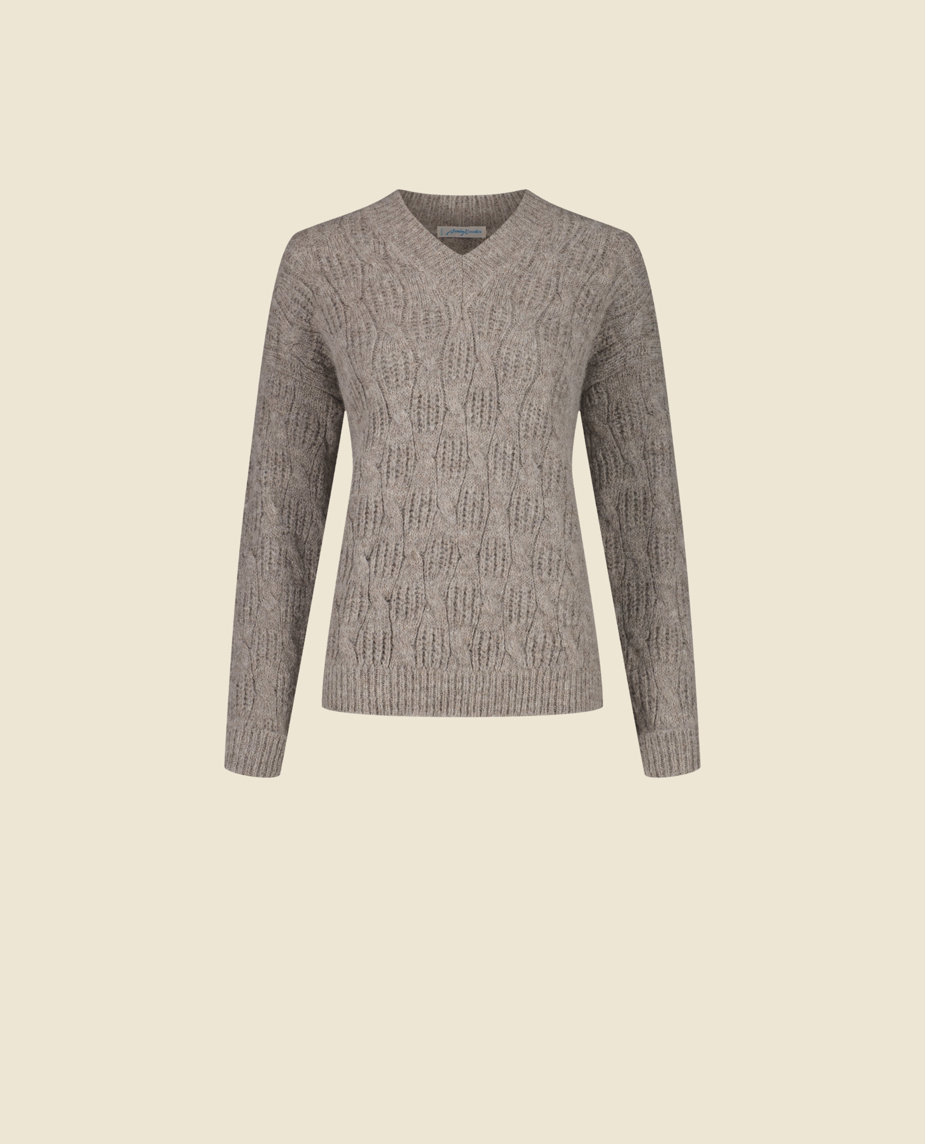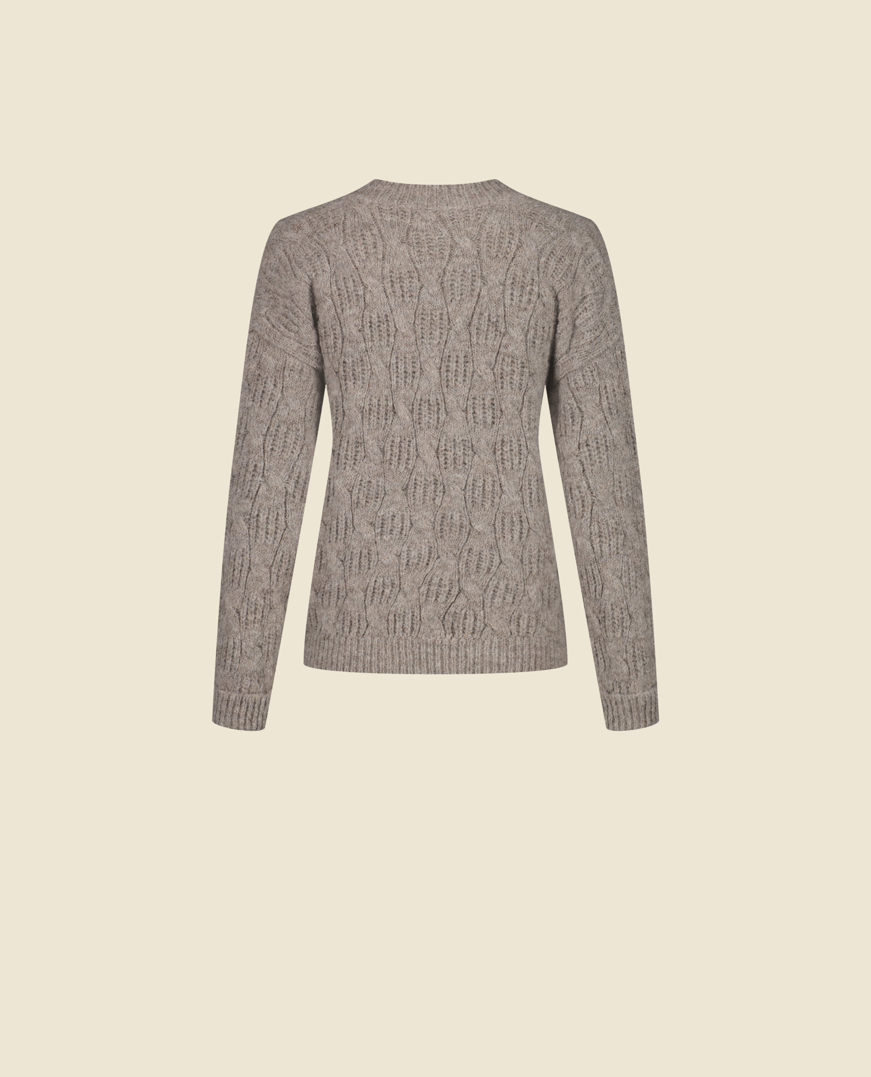 The Waffle sweater is defined by its cable knit and openwork texture. Enveloping and soft, this piece combines comfort and warmth to create a timeless, classic silhouette. The finesse of its detailing highlights a discreet and refined look.
