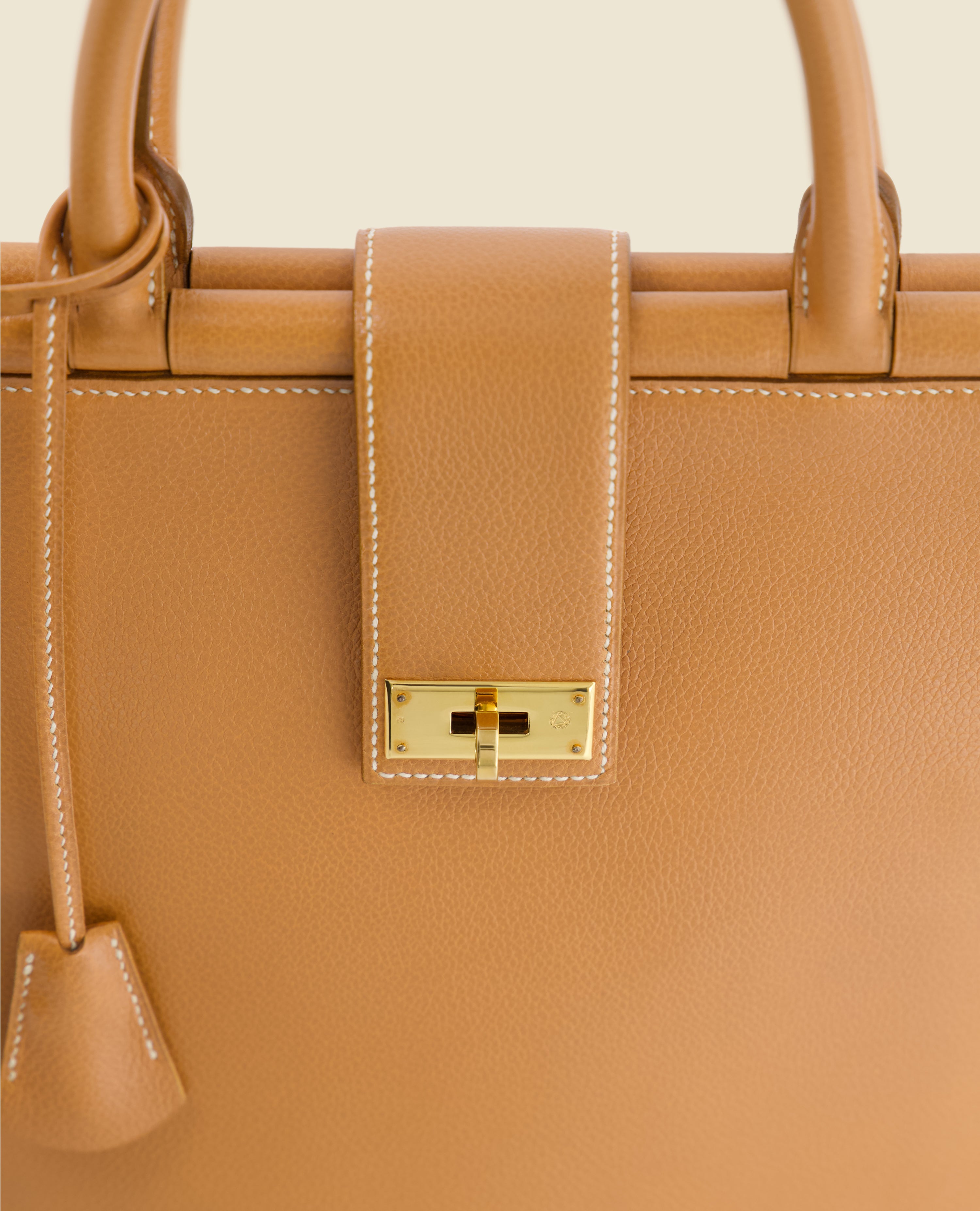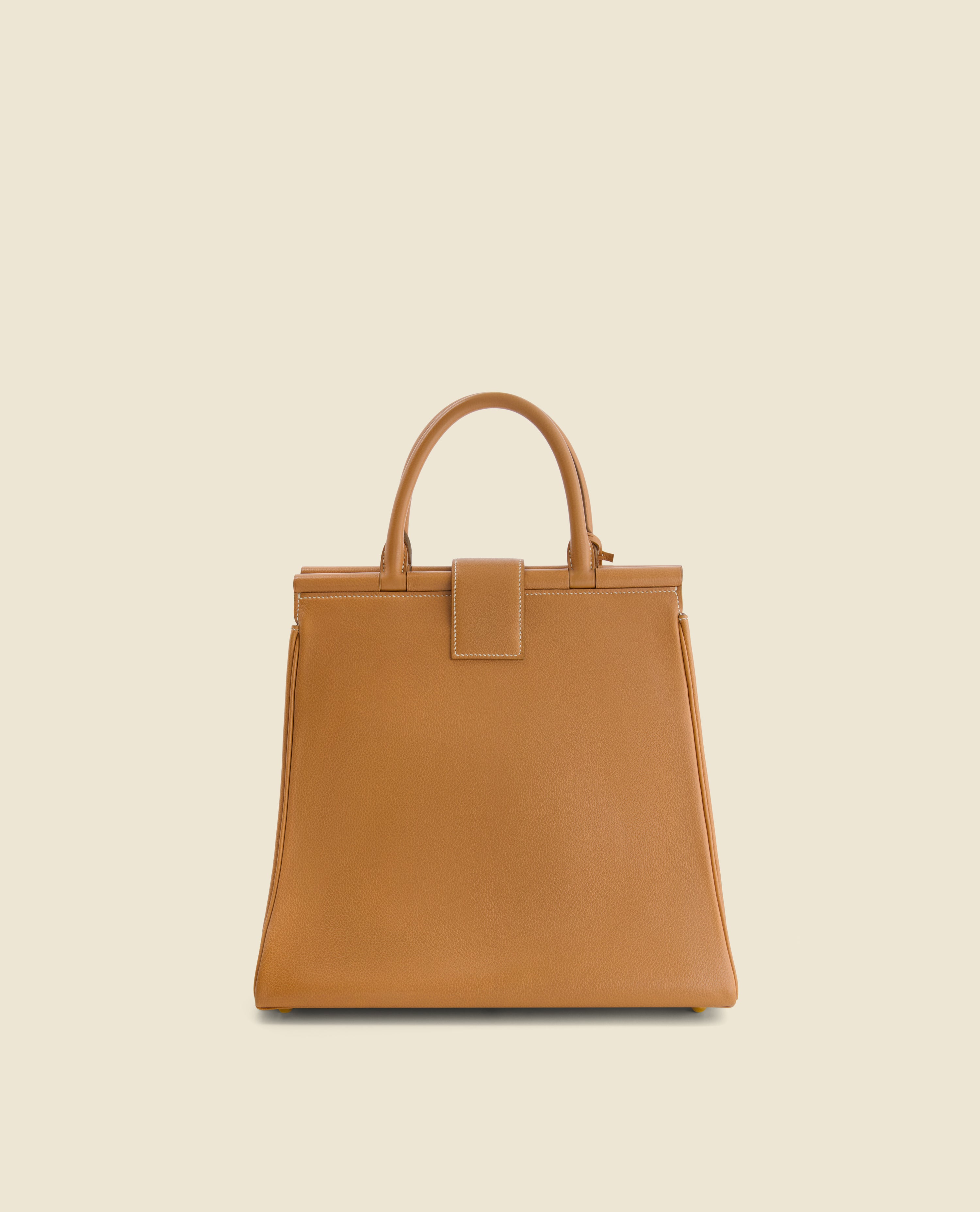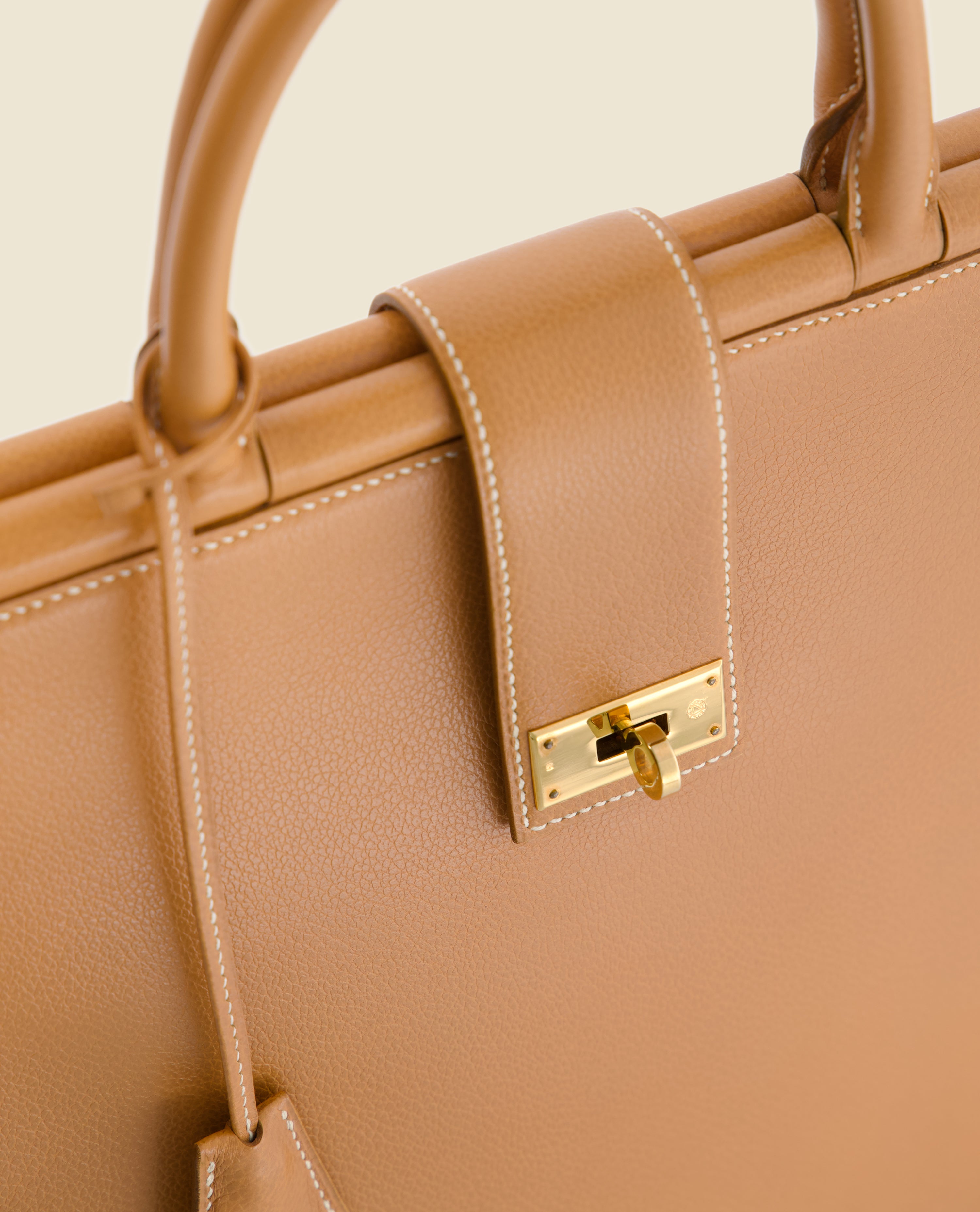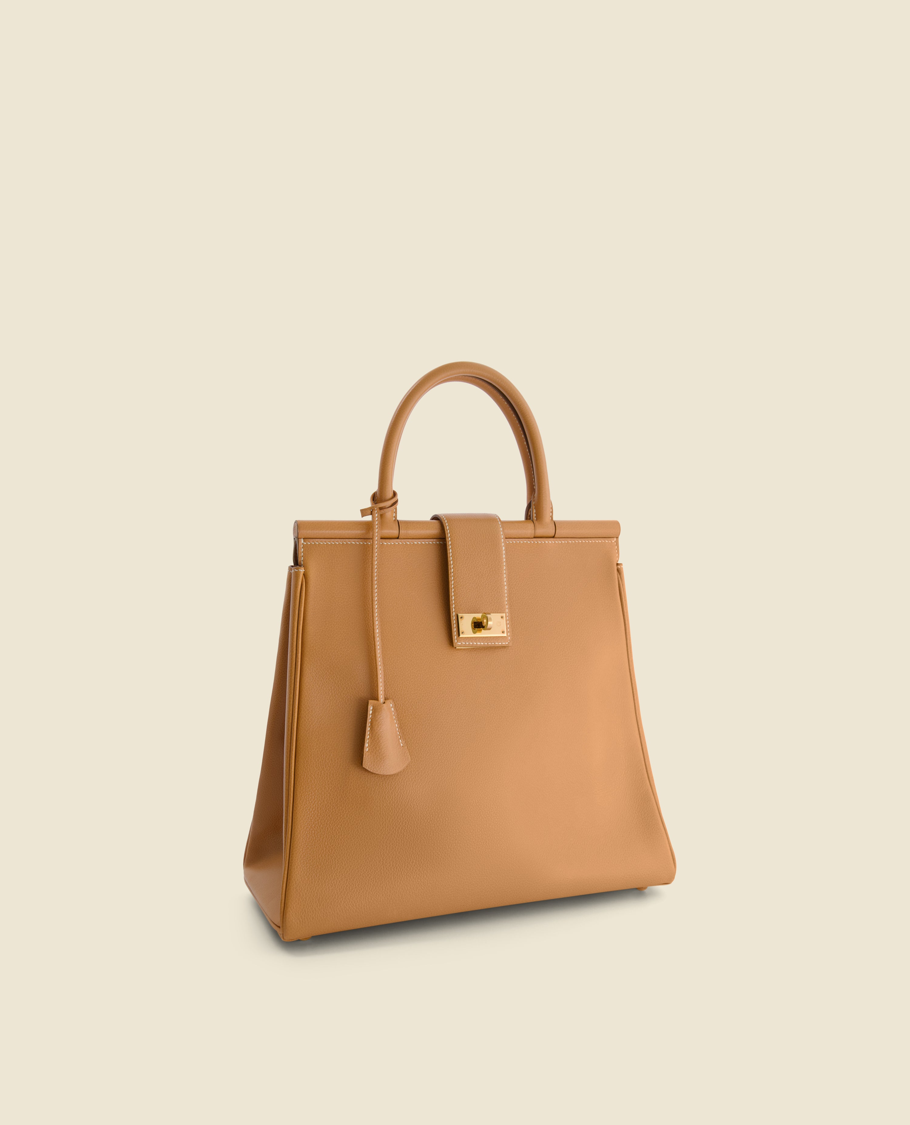 On requestVirgile bag in honey grained calfskin, entirely handcrafted by our Master Craftsman, awarded Meilleur Ouvrier de France.