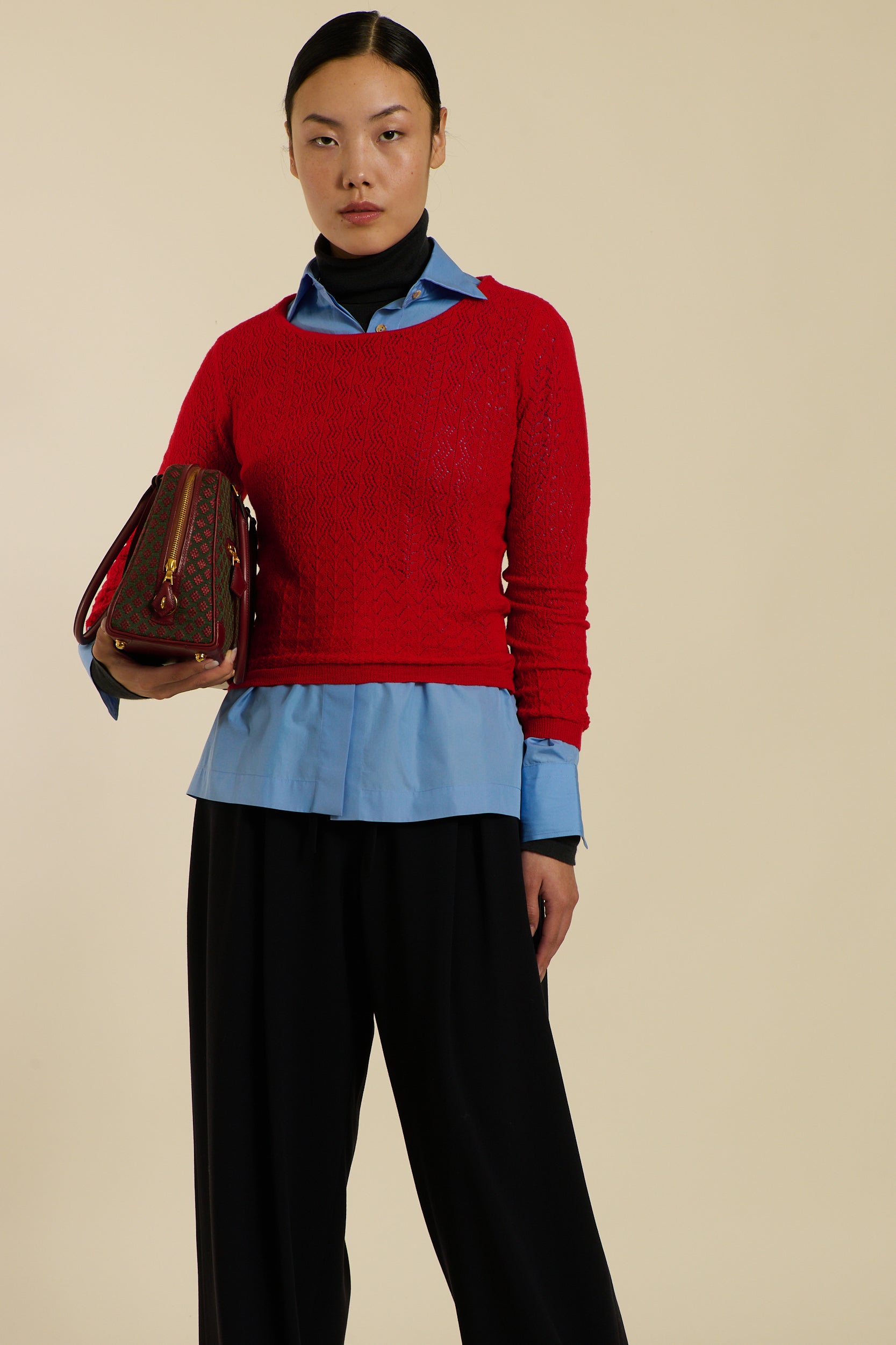 Le Happs Lace Sweater se distingue par des surpiqûres ajourées finement élaborées, qui laissent entrevoir un motif délicat. Cette pièce est d'une légèreté incomparable, parfaite pour une allure décontractée, soignée. Chaque détail reflète l'expertise artisanale de la Maison Amin Kader, faisant de ce modèle une pièce singulière et unique.