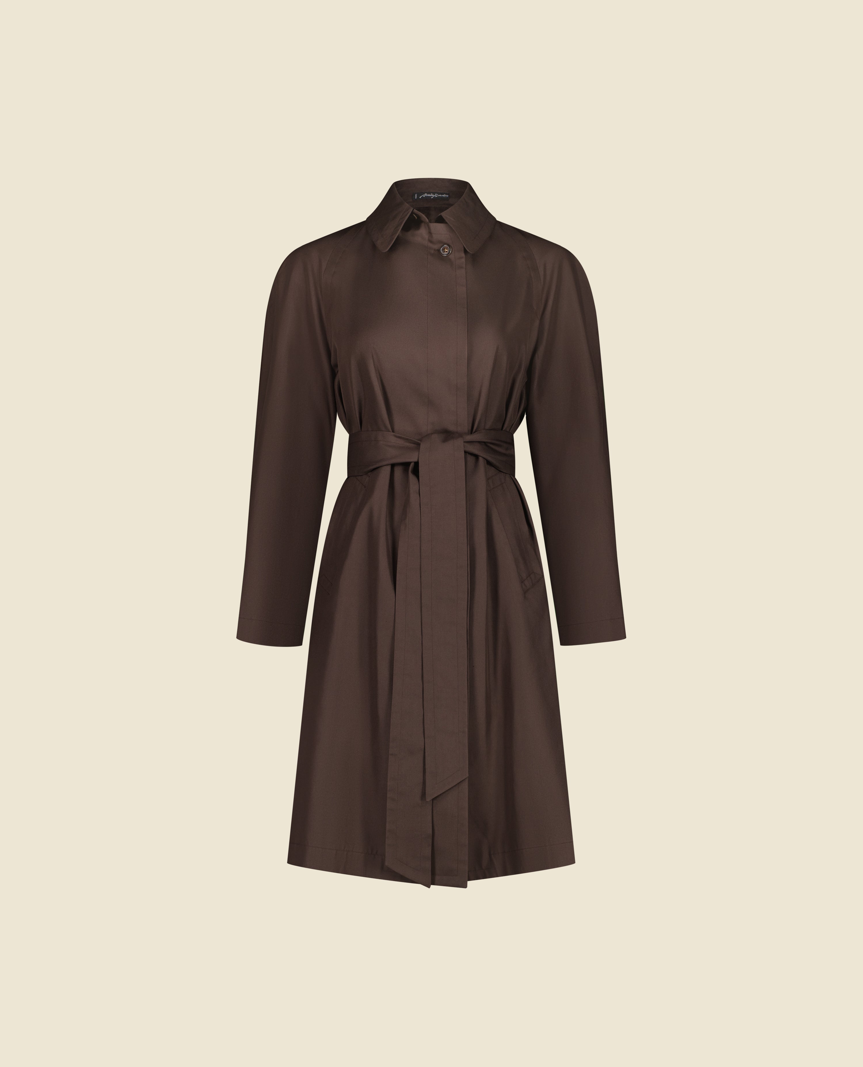 Le trench Saint-Germain, en twill de soie imperméable, est une pièce intemporelle et emblématique. À la coupe droite, légèrement évasée elle est réalisée avec un montage tailleur dans nos ateliers parisiens.