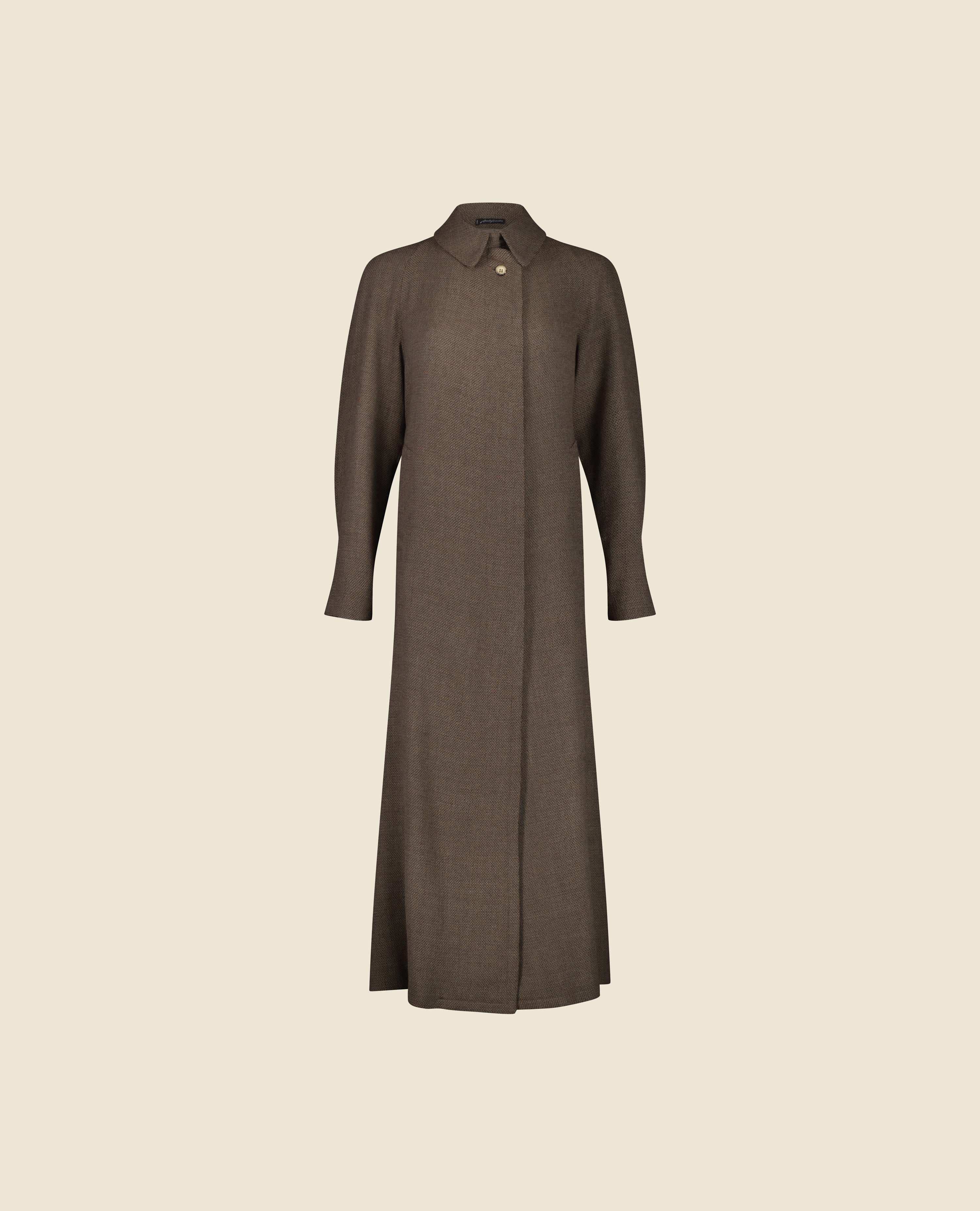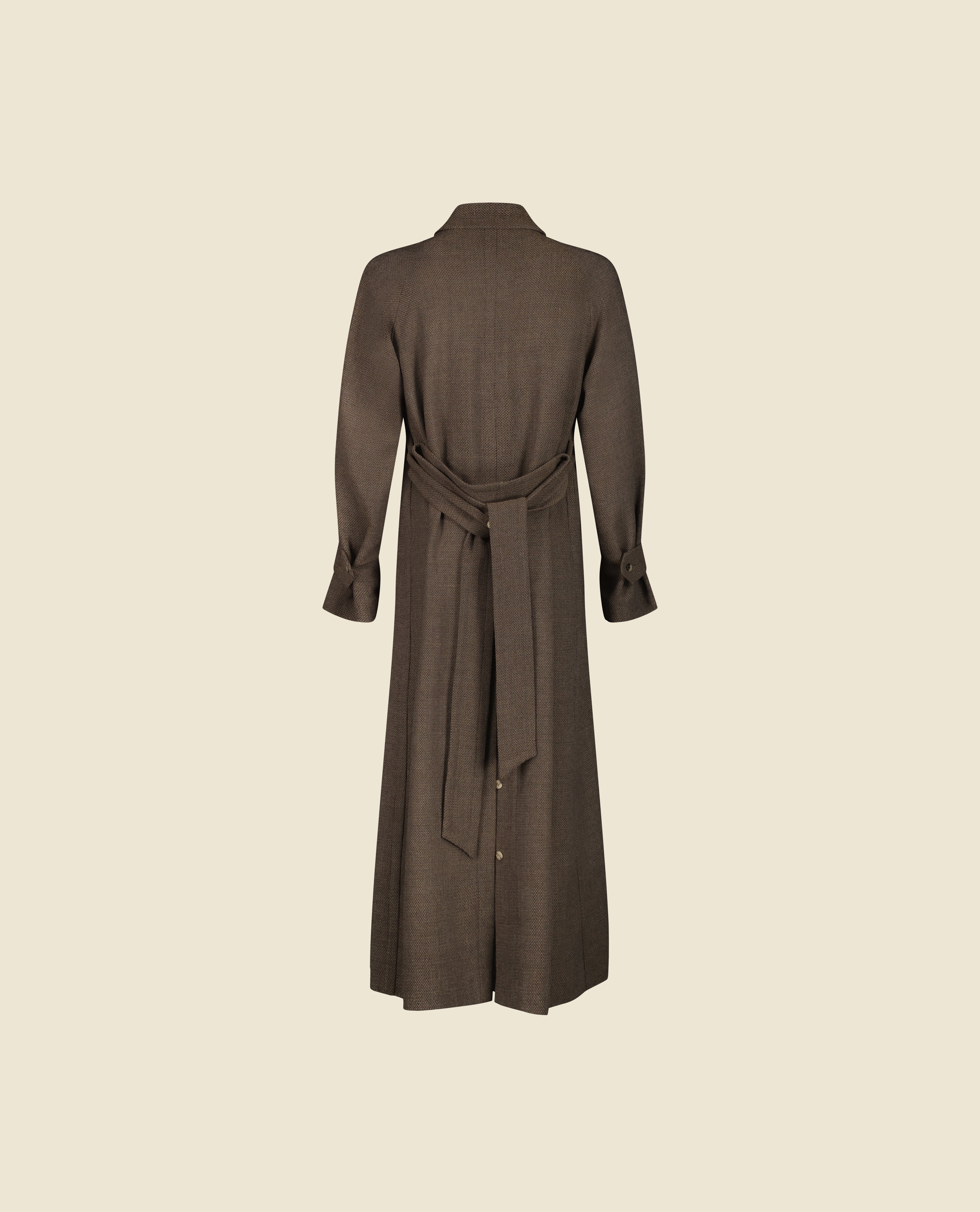 Le trench Saint-Germain long, en crêpe de laine, est une pièce intemporelle et emblématique. À la coupe droite, légèrement évasée elle est réalisée avec un montage tailleur dans nos ateliers parisiens.