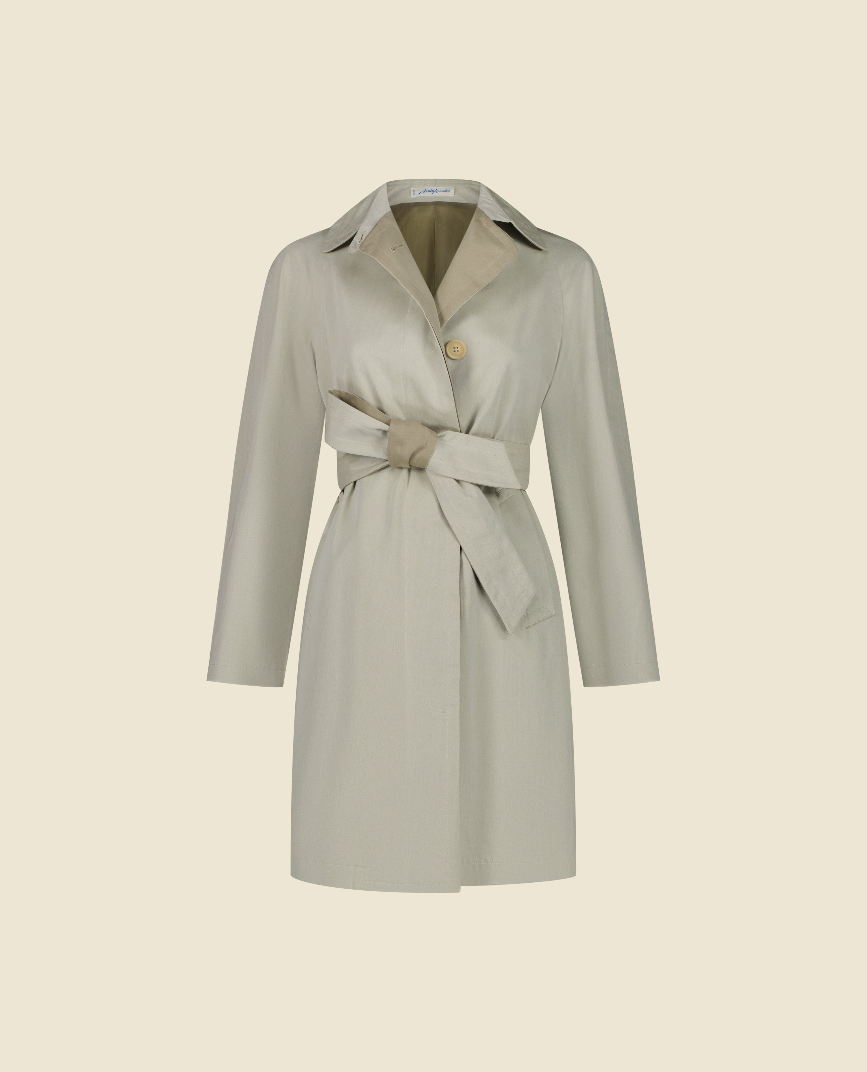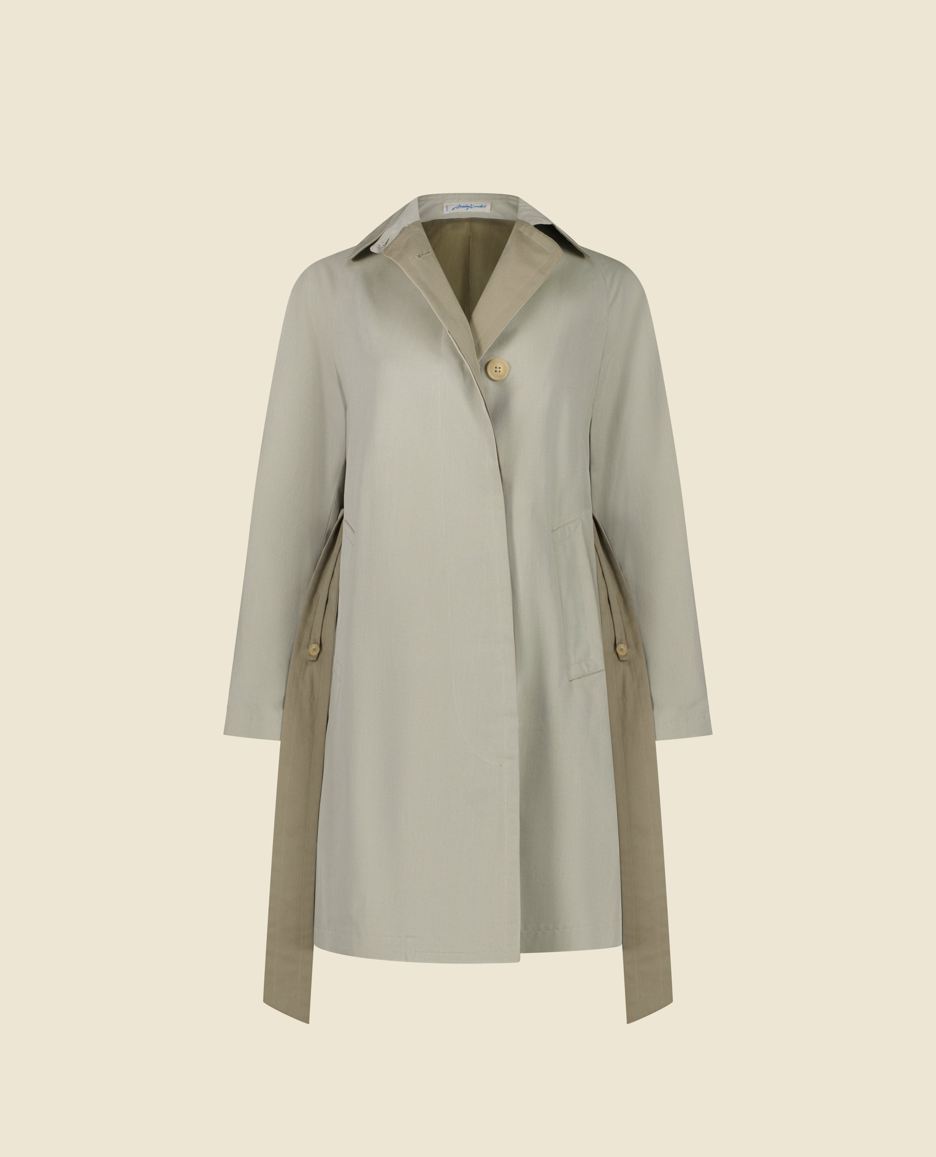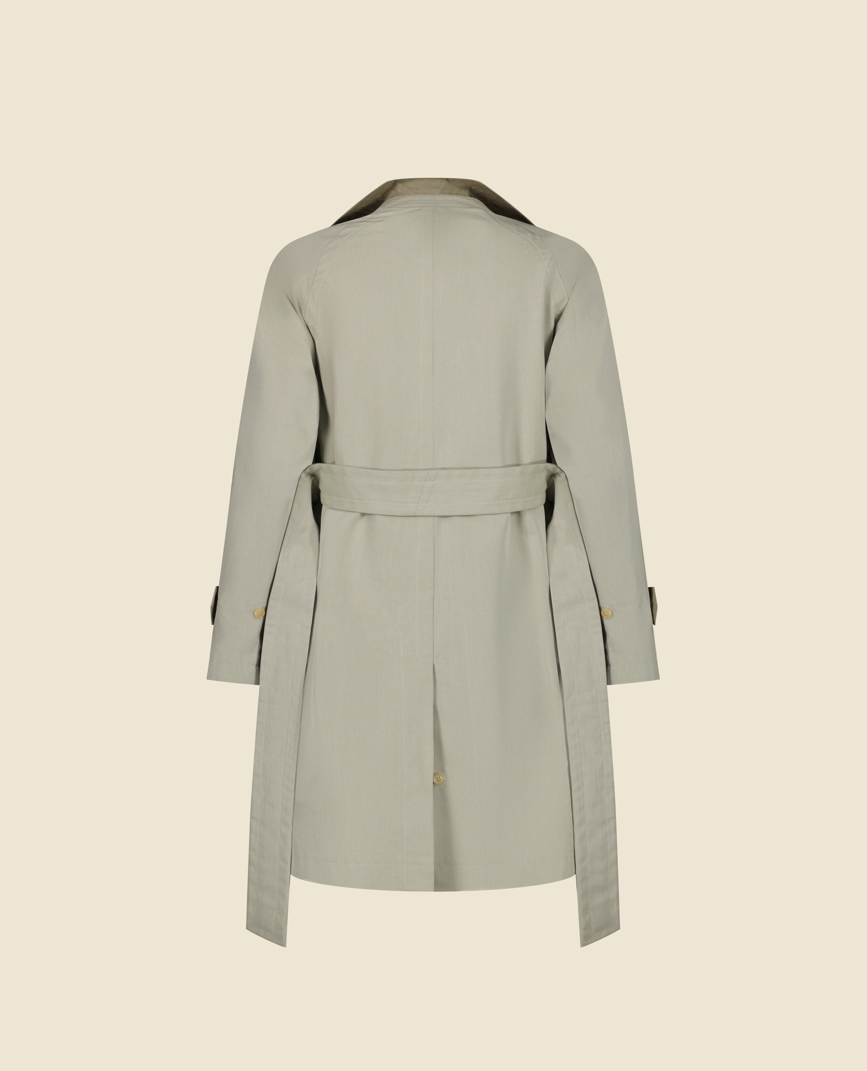 Le trench Saint-Germain bicolore, en coton imperméable, est une pièce intemporelle et emblématique. À la coupe droite, légèrement évasée elle est réalisée avec un montage tailleur dans nos ateliers parisiens.